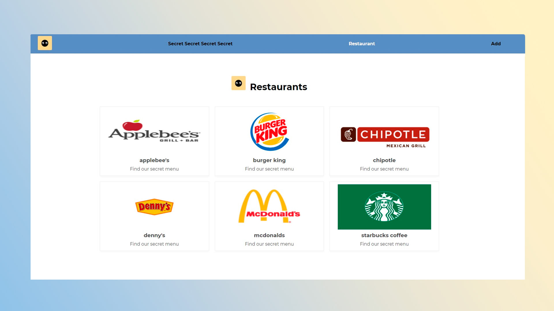App design about finding the secret menu of your favorite restaurantes.