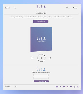 I designed a website for a made up client, Lila, who has been working for five years in the music industry and needs to launch her carrer to the next level.